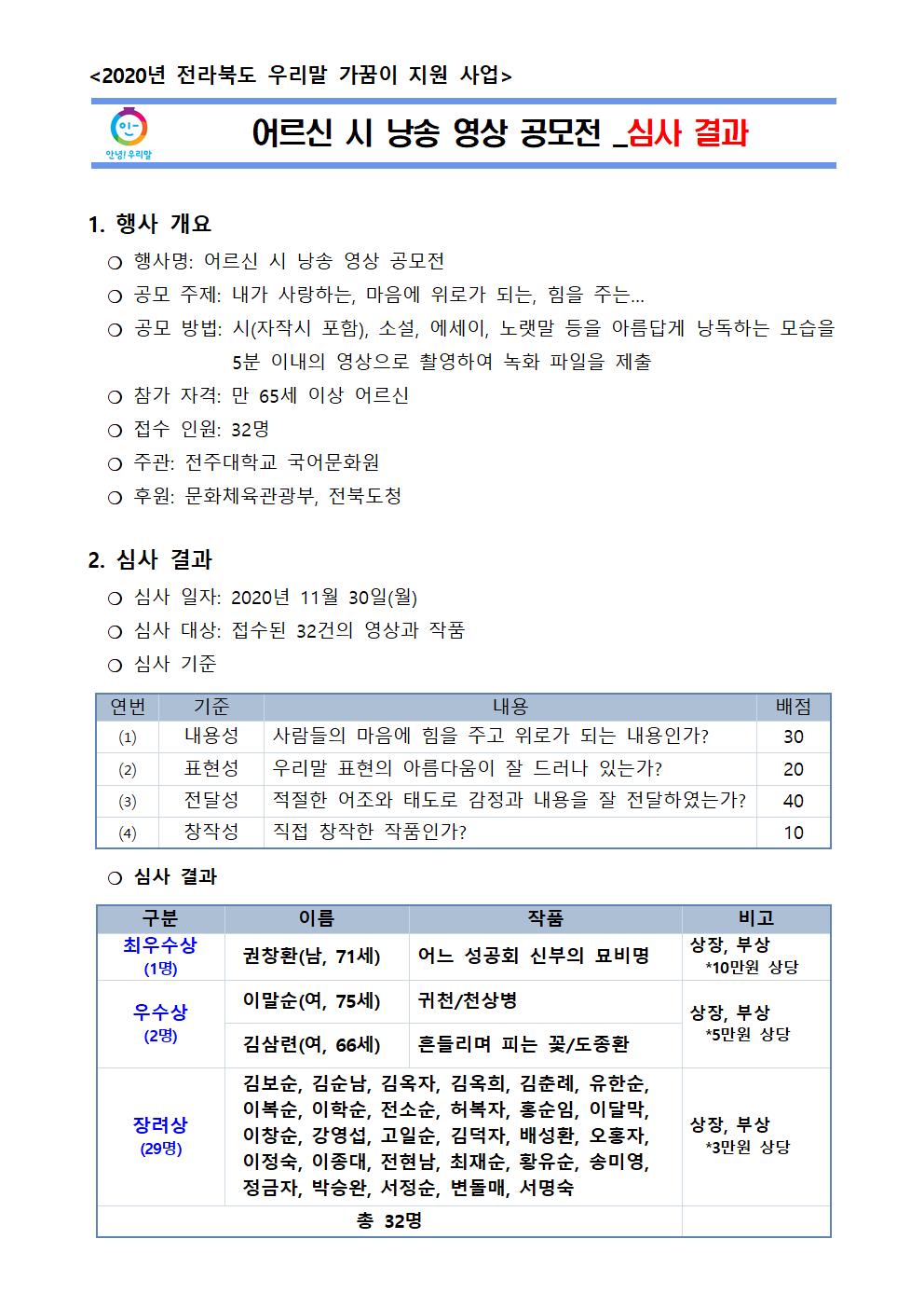 2023 한글큰잔치 [성인문해학습 체험 수기 공모] 수상자 안내 -